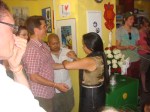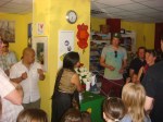 Zur Verabschiedung des Lernhafen Hort fand eine Baci mit ca. 100 Gästen statt. Kim (Kinkeo Xayapeth) hat die Baci angeleitet. Erzieher, Eltern und die Kinder waren von diesem Ritual fasziniert.